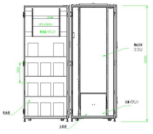 當(dāng)要求超長后備時間,例如1小時,2小時等,如果主機(jī)柜內(nèi)部空間不夠,此時我們會配套一個外形跟主機(jī)柜類似的電池柜,它主要作用是放置后備電池,此電池柜前后側(cè)門各方面技術(shù)參數(shù)參數(shù)與主體機(jī)柜無異,保持外觀一致性,整潔美觀,只是機(jī)柜內(nèi)部不需要有冷熱封閉功能,不需要有監(jiān)控門及其天窗狀態(tài)等。