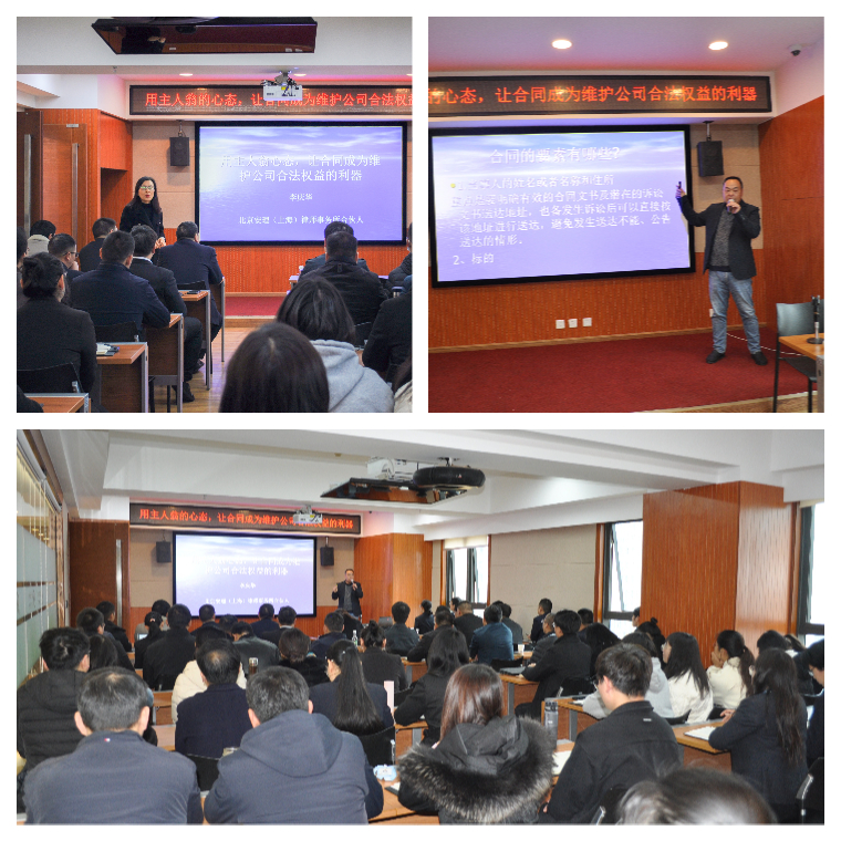 為增強(qiáng)全體員工的法律基礎(chǔ)知識(shí),提升法律素養(yǎng),規(guī)避合同全生命周期管理過程中的法律風(fēng)險(xiǎn),保證公司業(yè)務(wù)經(jīng)營的可持續(xù)發(fā)展,3月3日上午,公司特邀李慶華律師開展了以“用主人翁的心態(tài),讓合同成為維護(hù)公司合法權(quán)益的利器”為主題的法律基礎(chǔ)知識(shí)專題培訓(xùn)。